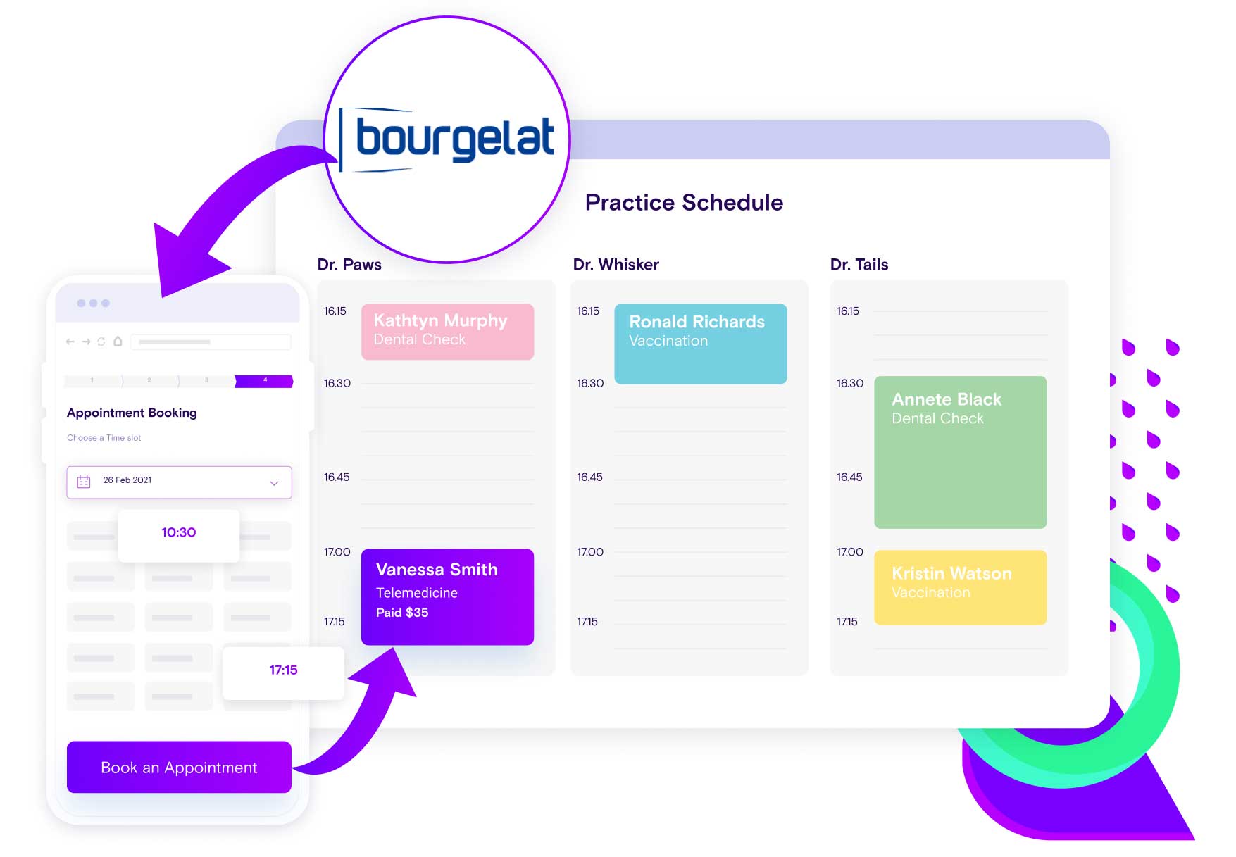Save time, improve service, and grow your practice by allowing pet parents to book appointments from your website straight into your Bourgelat calendar.